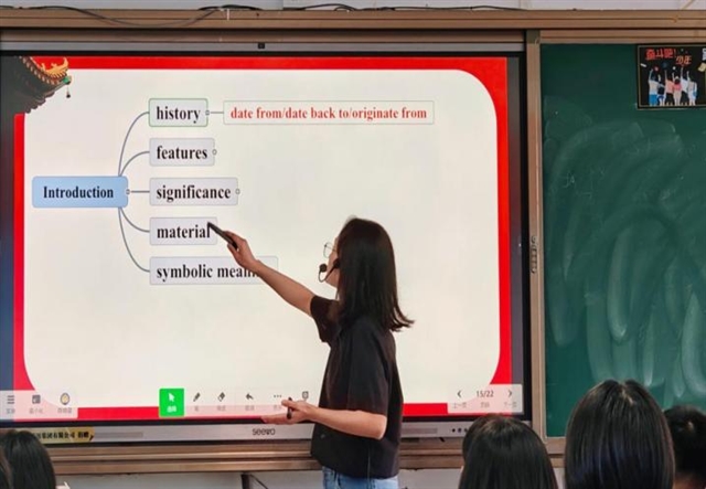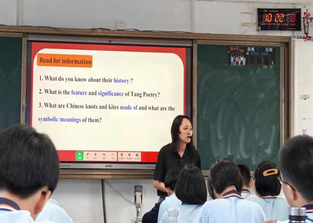为进一步了解中国特色的文化遗产,陈老师拓展了唐诗,风筝和中国结。归纳总结写文化类的文章如何介绍历史,特色以及说明意义等。提炼句型并操练句型,为最后的让学生写关于剪纸的历史特点以及意义做准备。