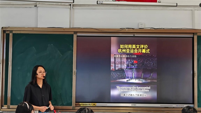 在评课环节,大家对本节课给予了充分的肯定。高三年备课组长何雁用“新”和“多”来评价陈晓星老师的这堂公开课。首先是新--呈现内容新。历届高三一轮都是按照书本固有模块复习。因为课堂套路学生都知道了,所以复习到最后学生都会很无聊,课上总不乏昏昏欲睡的学生。晓星老师今天帮我们探索高三复习的一条新路----按话题复习。依靠话题划分教材,将相关话题的词汇,句型综合起来,指导学生形成自己的话题知识体系。二是多--设计活动多。在本节公开课上,各种活动接踵而至。从利用时事热点亚运视频导入新课,到课堂知识输入环节采用brainstorm形式复习已知的话题单词,再到帮助学生归纳介绍文化信息的几大要点,从词到句,都在为后面课堂输出环节----让学生写一封与剪纸相关的回信,做充足的铺垫。这是一堂精彩的词汇复习课,值得我们学习。