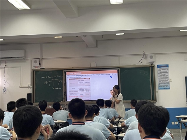 在精读环节,何嘉琪老师设置了划每段中心句的任务,然后分析文章结构。接着以填表格的方式让学生加深对文本的理解,巩固所学。在读后环节,何嘉琪老师设置了小组合作活动,四个学生一组,分工明确。任务是给想了解如何在中国得体运用肢体语言的外国友人Adam一些建议。