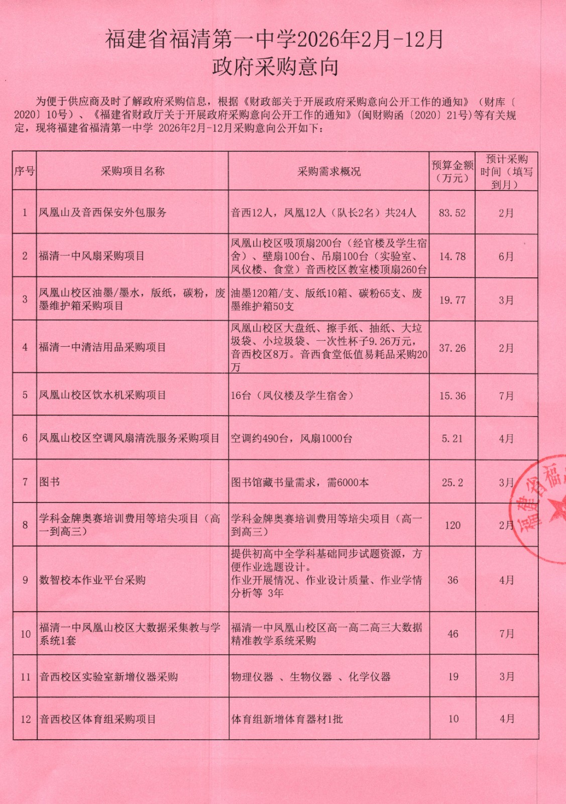 2026年2月-12月政府采购意向